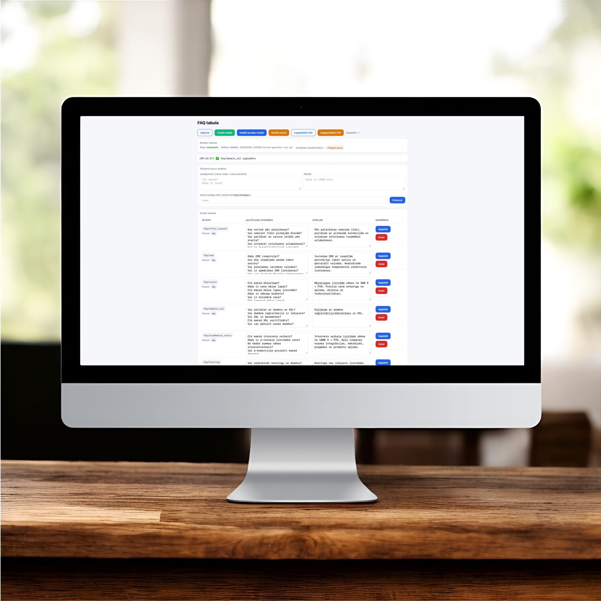Du kommer att kunna lägga till, korrigera eller ta bort svar på frågor i din chatbot. Det är mycket enkelt, inga extra IT-kunskaper, bara spela in och spara. Du kan också ladda ner allt i en CSV-fil för enkel genombläddring, samt lägga till och skicka till andra.